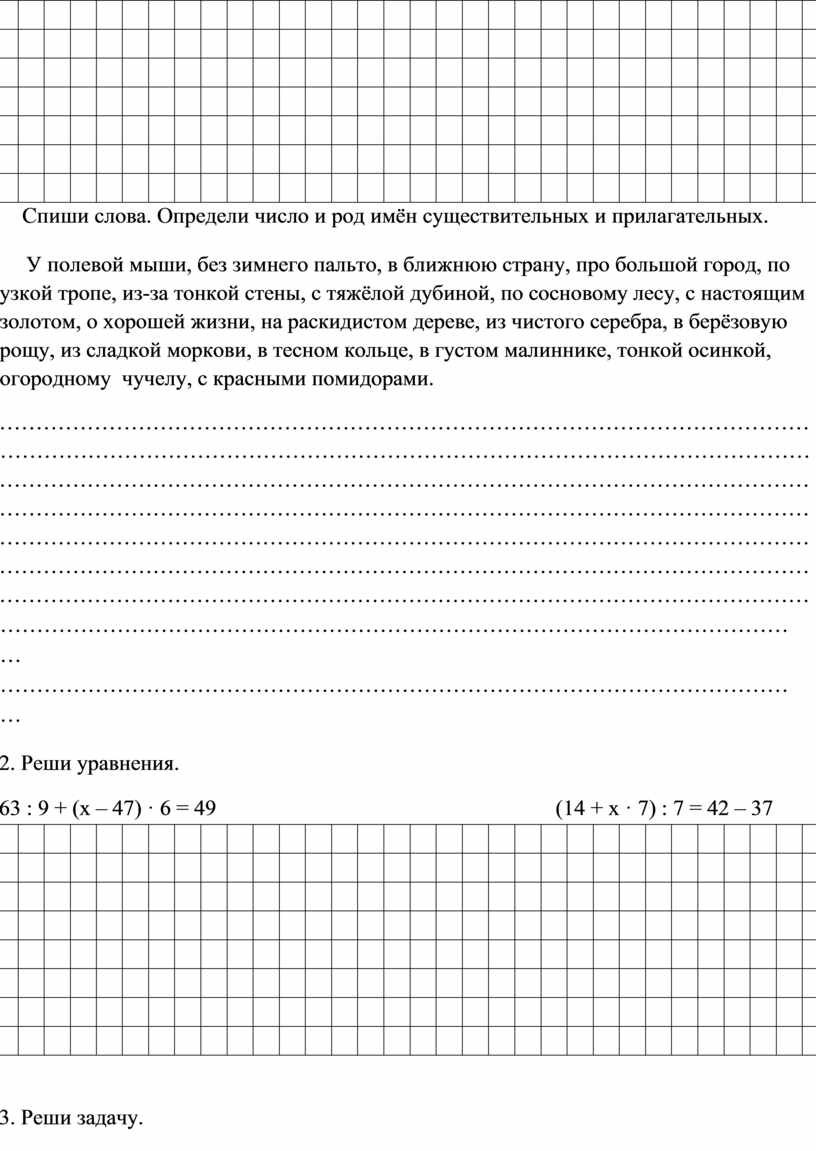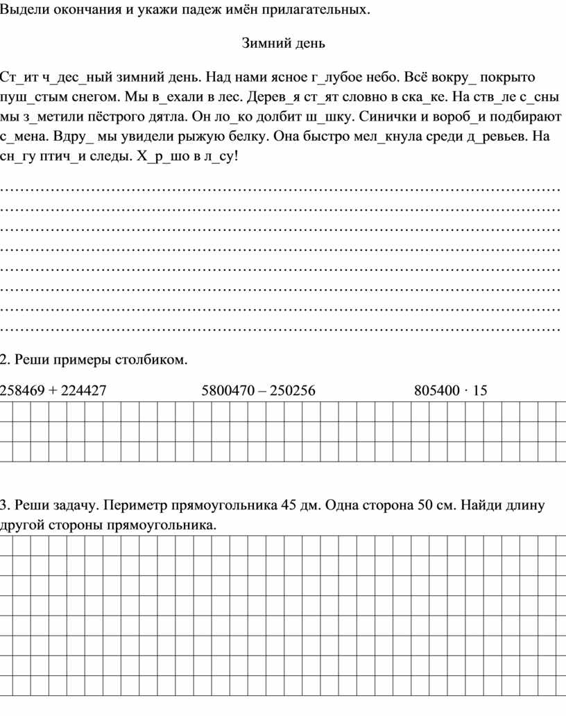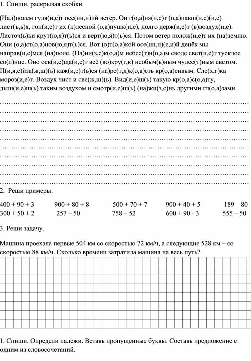 1. Спиши. Определи падежи. Вставь пропущенные буквы. Составь предложение с одним из словосочетаний.