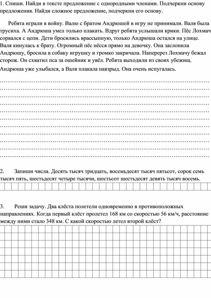 1. Спиши. Найди в тексте предложение с однородными членами. Подчеркни основу предложения. Найди сложное предложение, подчеркни его основу.