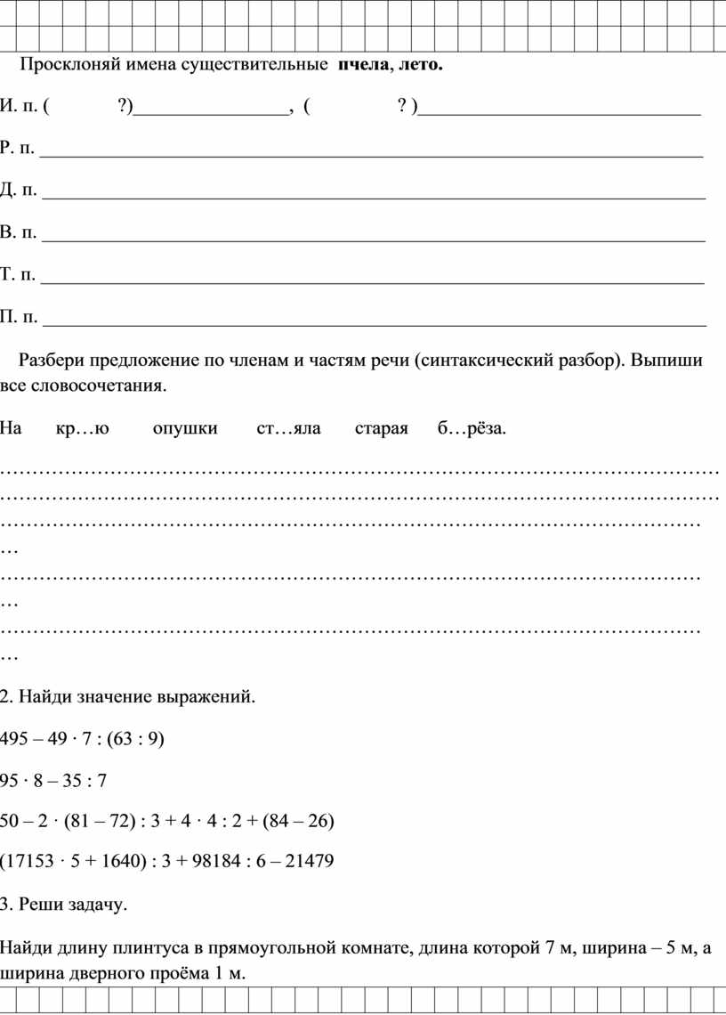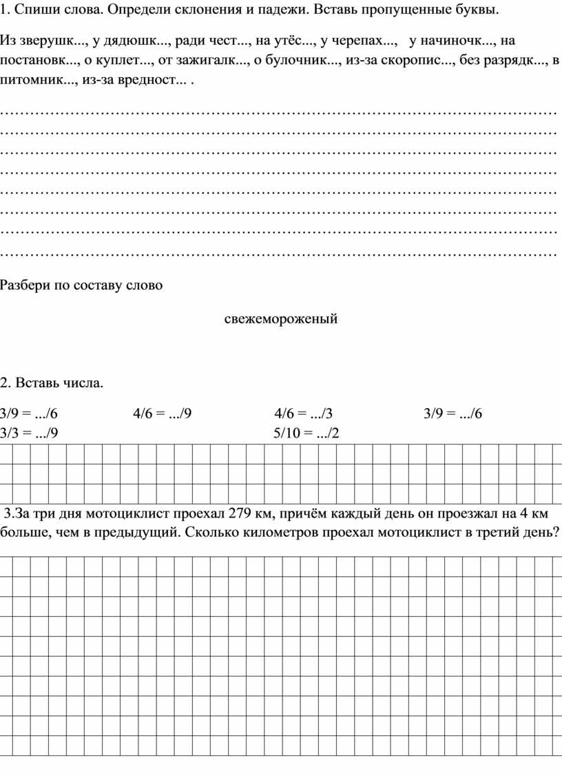 1. Спиши слова. Определи склонения и падежи. Вставь пропущенные буквы.