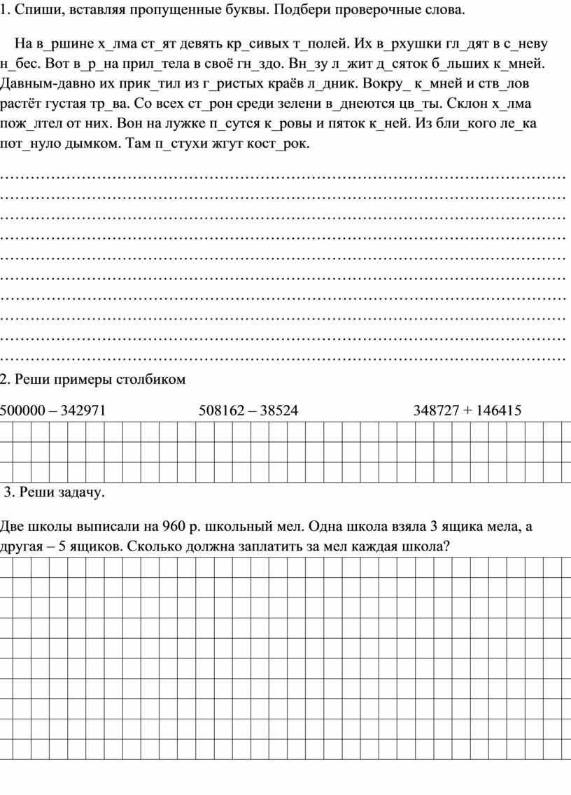 1. Спиши. Выдели орфограммы. Запиши проверочные слова.