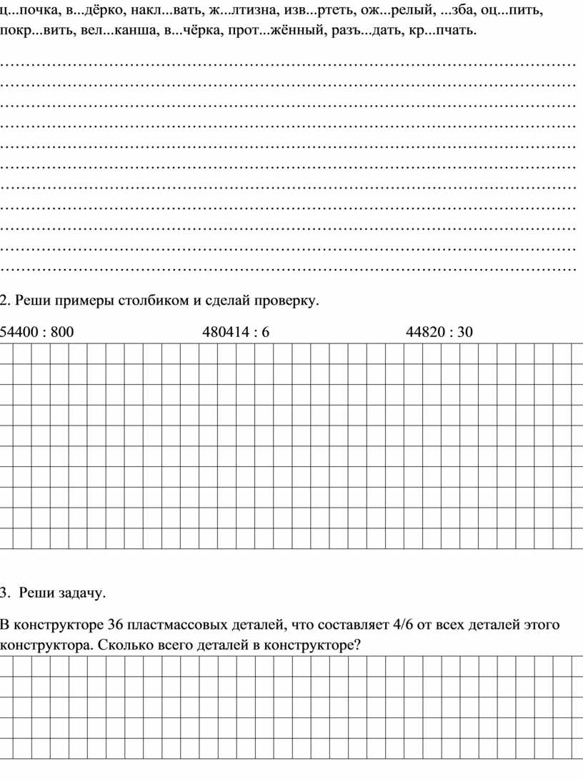 к...рабль, к...стёр, ж...лание, пр...крас...ный, к...манда.