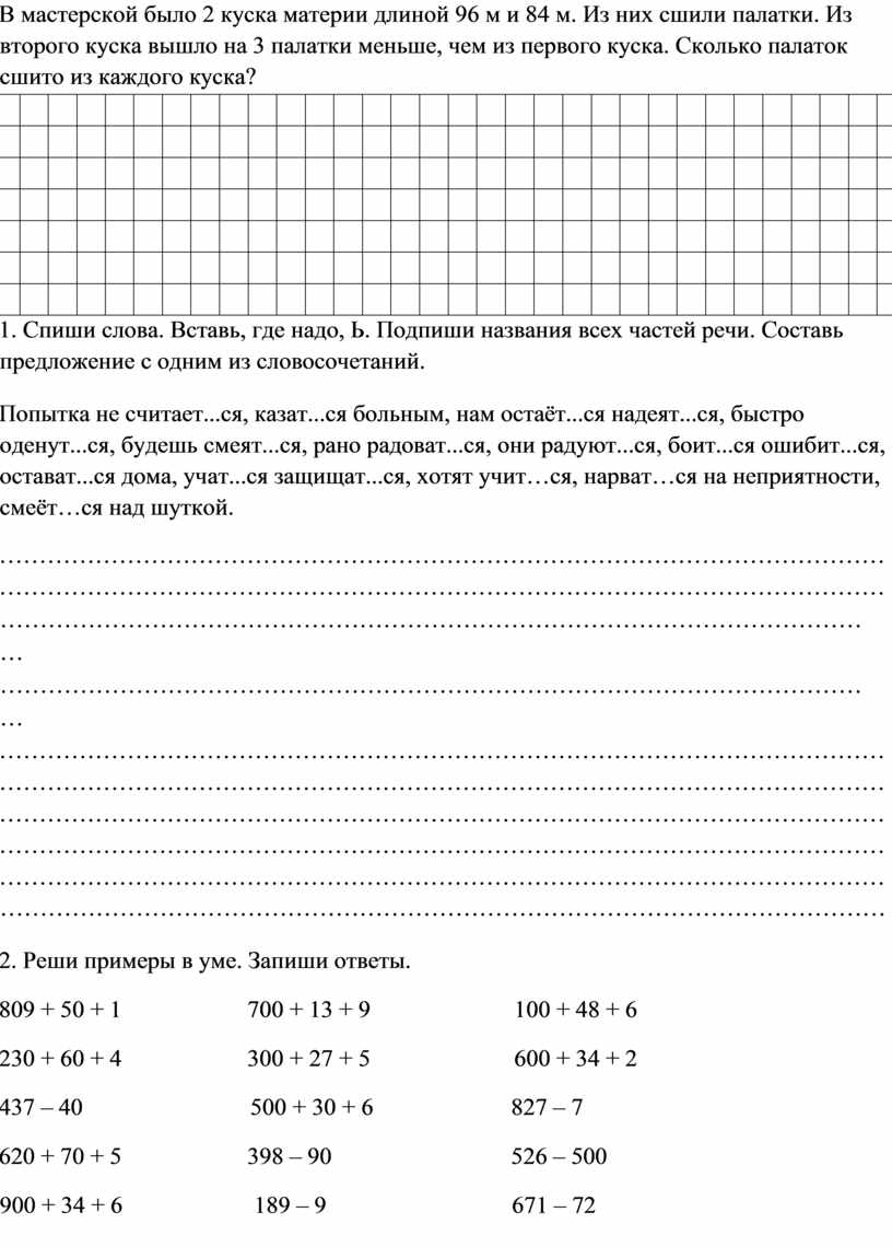 2. Реши примеры в уме. Запиши ответы.