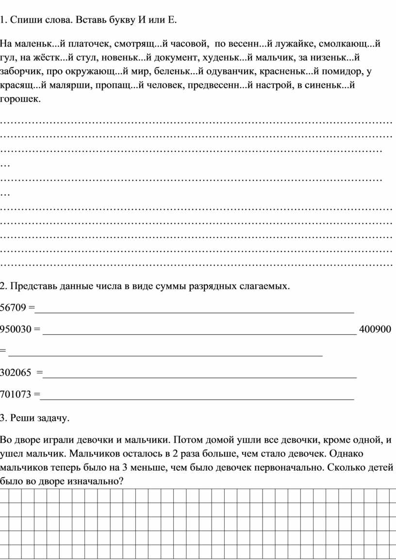 1. Спиши, вставляя, где необходимо, пропущенные буквы.