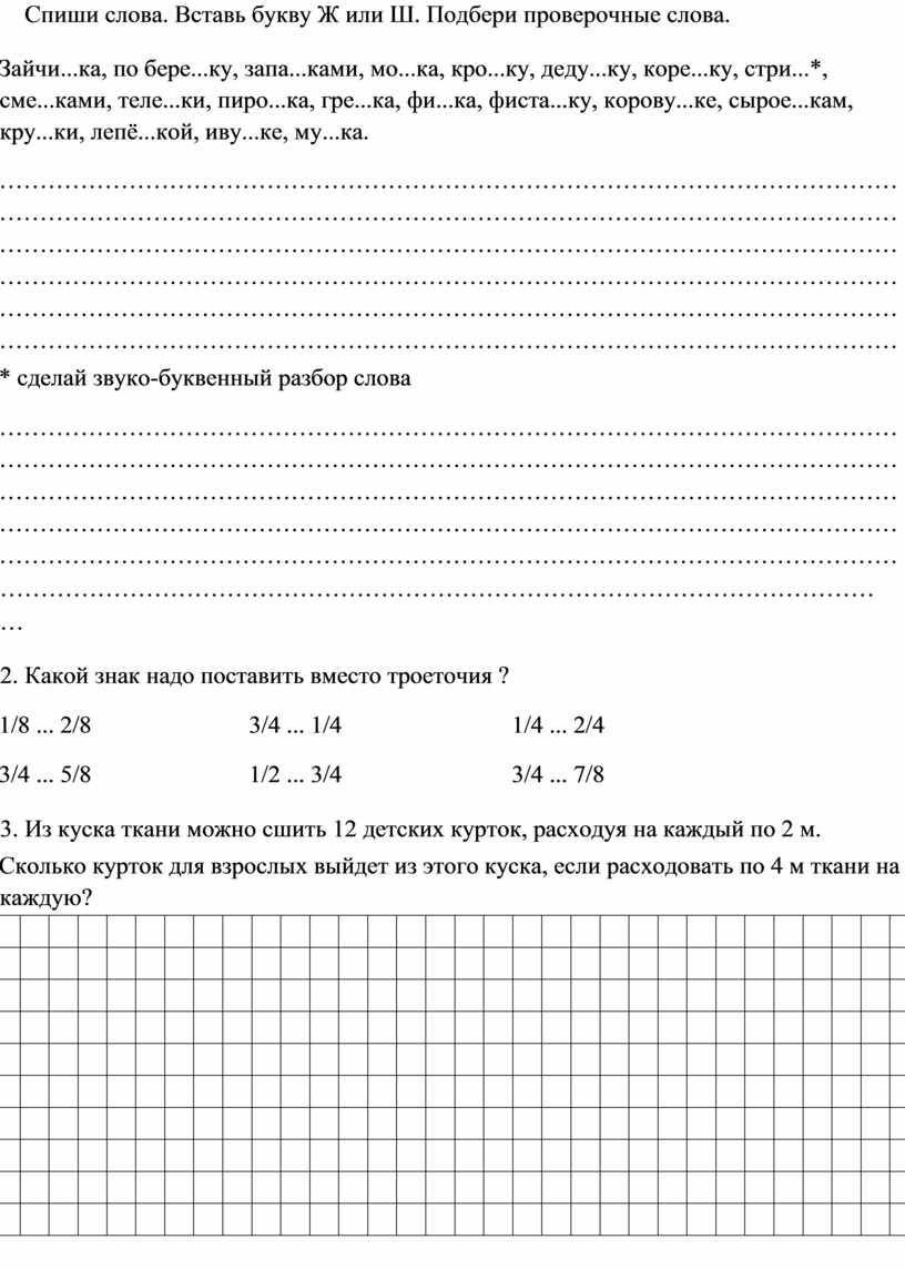 Спиши слова. Вставь букву Ж или Ш. Подбери проверочные слова.
