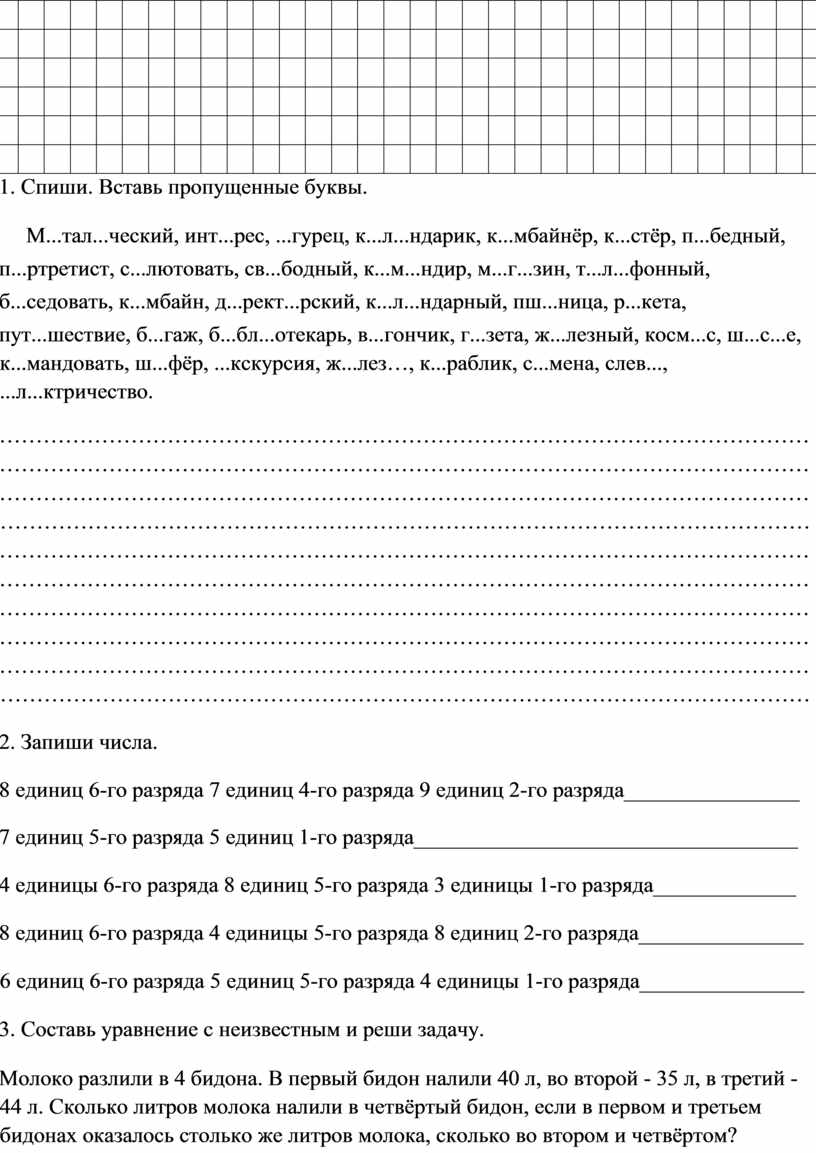 1. Спиши. Вставь пропущенные буквы.