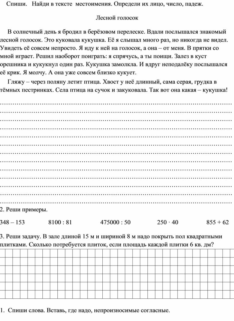 Спиши. Найди в тексте местоимения. Определи их лицо, число, падеж.