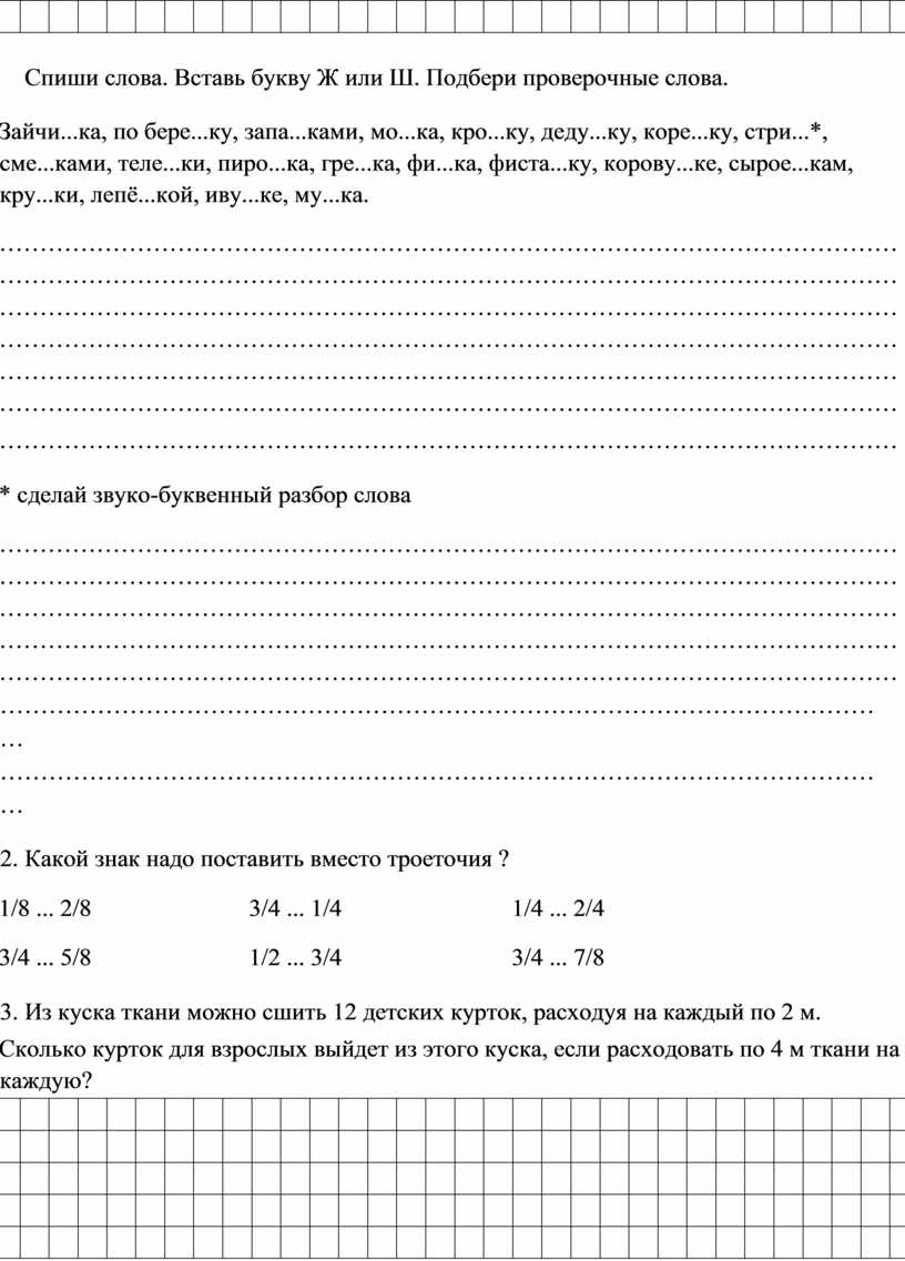 Спиши слова. Вставь букву Ж или Ш. Подбери проверочные слова.