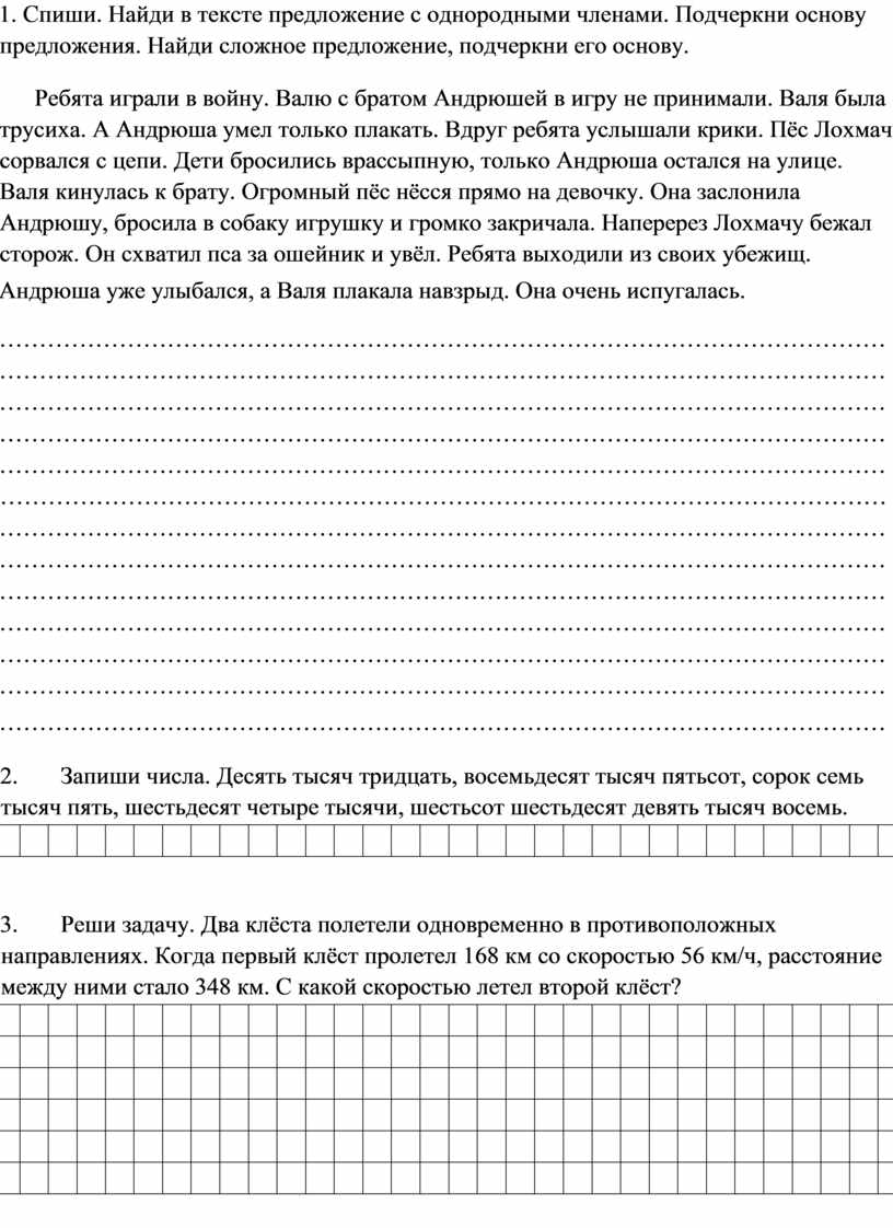 1. Спиши. Найди в тексте предложение с однородными членами. Подчеркни основу предложения. Найди сложное предложение, подчеркни его основу.