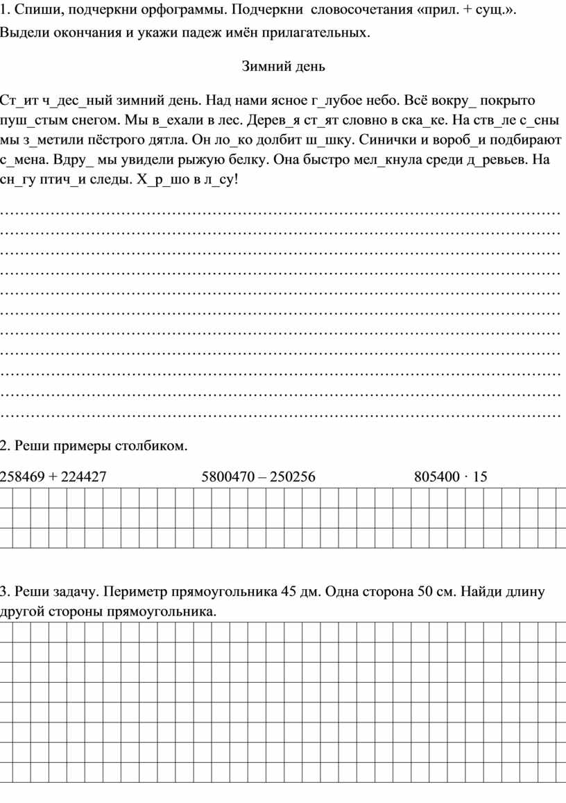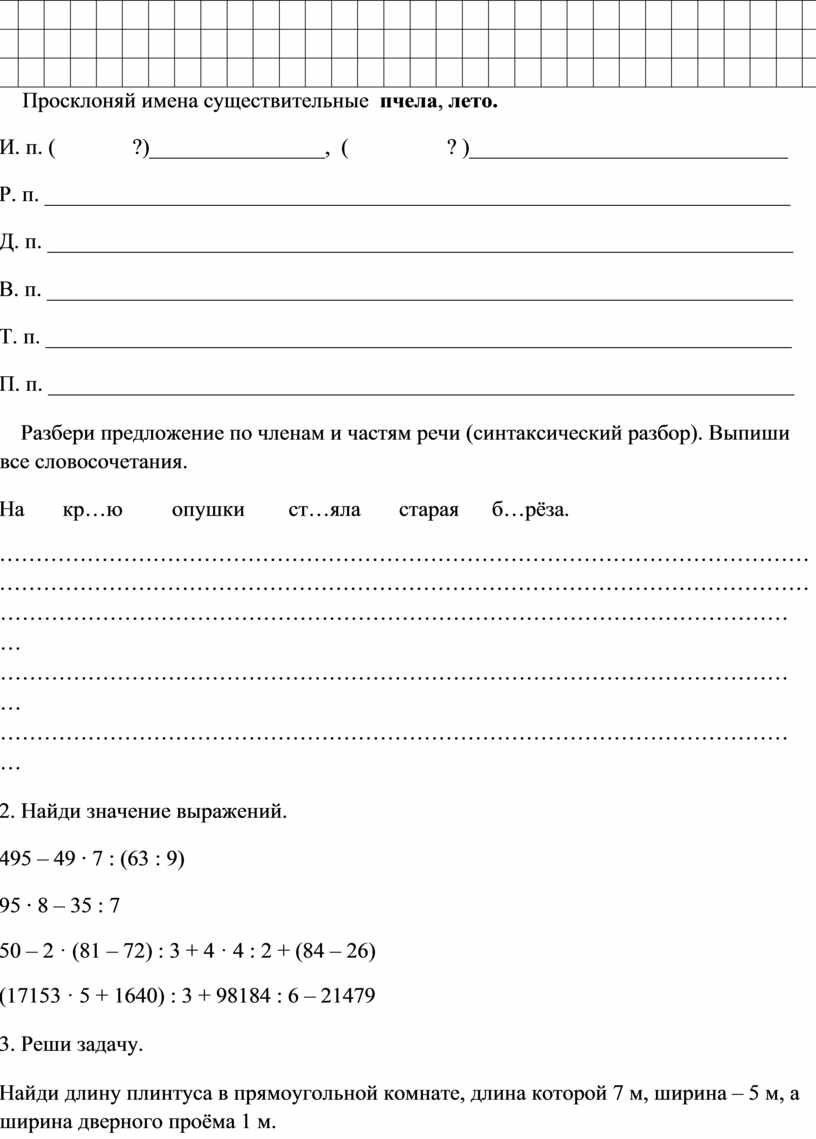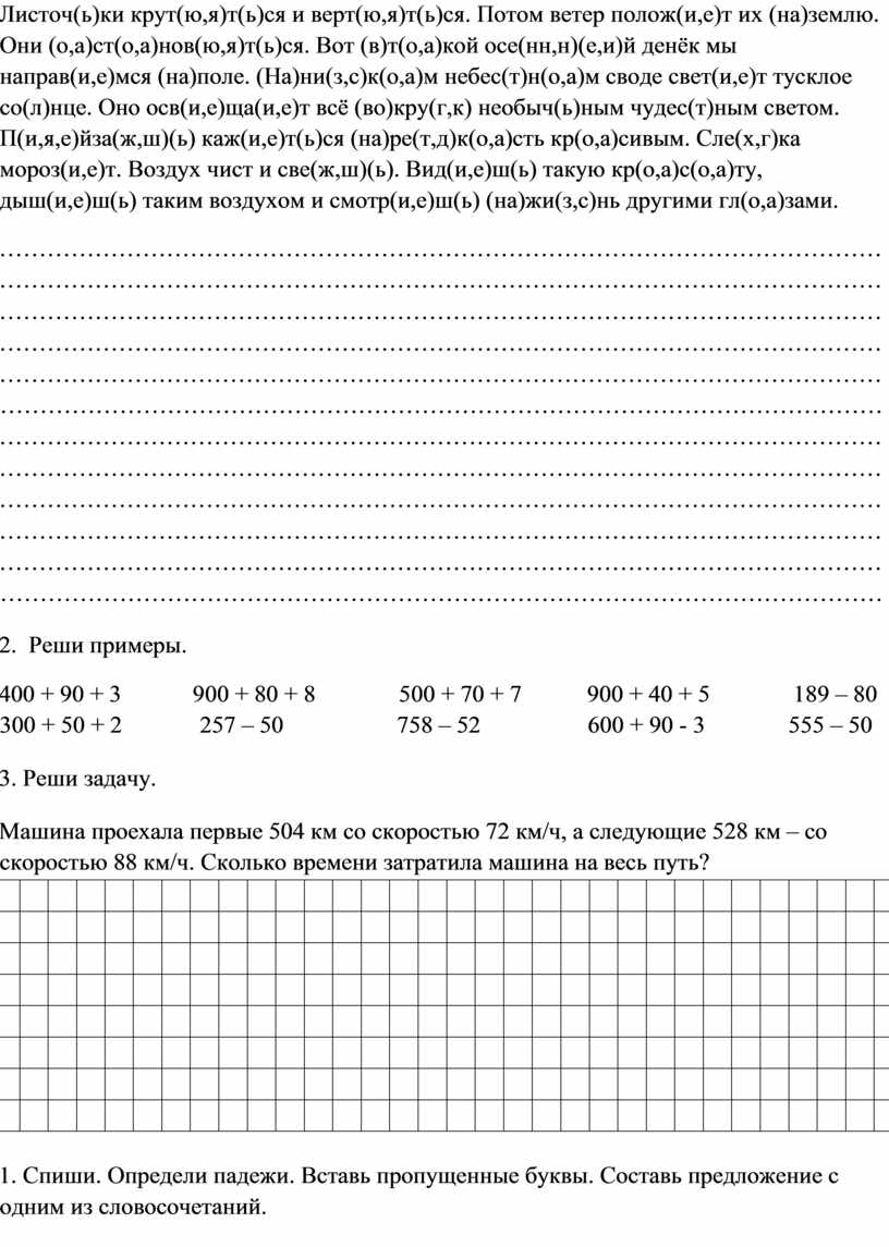 1. Спиши. Определи падежи. Вставь пропущенные буквы. Составь предложение с одним из словосочетаний.