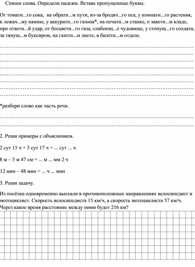 Спиши слова. Определи падежи. Вставь пропущенные буквы.