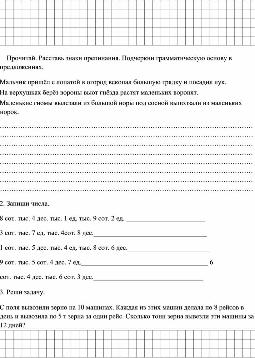 Прочитай. Расставь знаки препинания. Подчеркни грамматическую основу в предложениях.