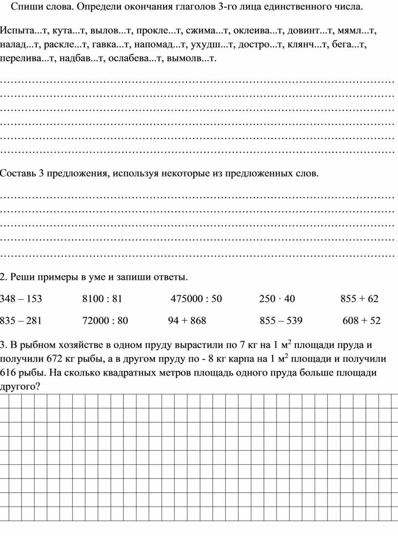 Спиши слова. Определи окончания глаголов 3-го лица единственного числа.