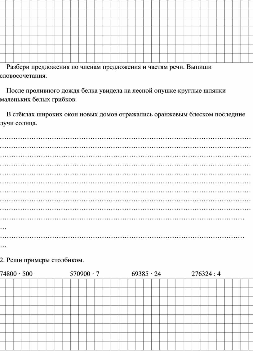 Разбери предложения по членам предложения и частям речи. Выпиши словосочетания.