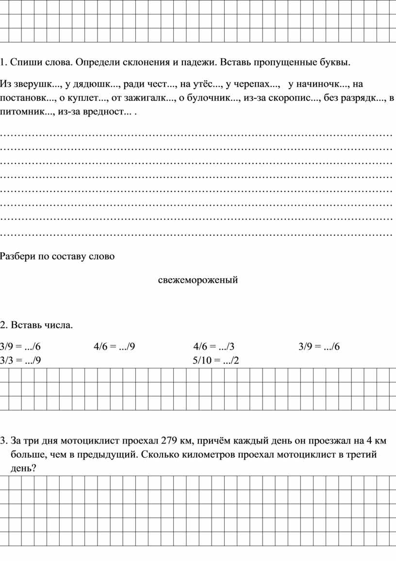 1. Спиши слова. Определи склонения и падежи. Вставь пропущенные буквы.