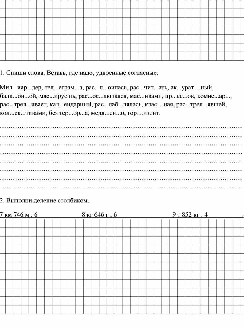 1. Спиши слова. Вставь, где надо, удвоенные согласные.