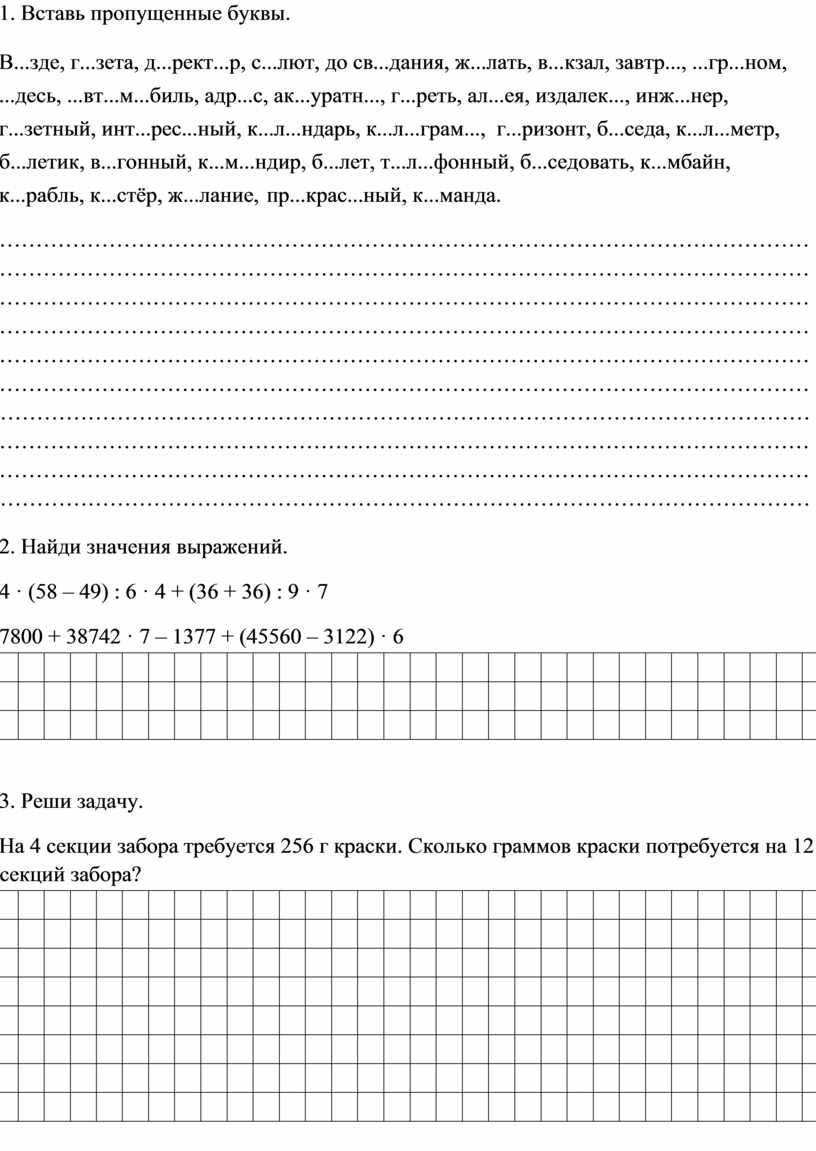 В...зде, г...зета, д...рект...р, с...лют, до св...дания, ж...лать, в...кзал, завтр..., ...гр...ном,