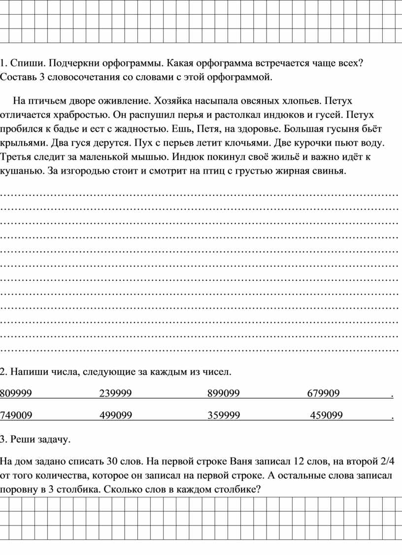 1. Спиши. Подчеркни орфограммы. Какая орфограмма встречается чаще всех? Составь 3 словосочетания со словами с этой орфограммой.