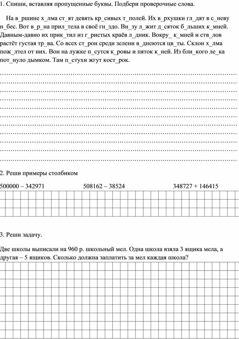 1. Спиши. Выдели орфограммы. Запиши проверочные слова.