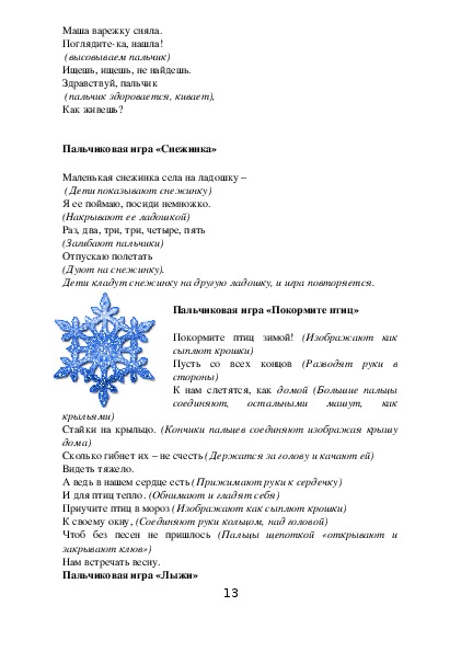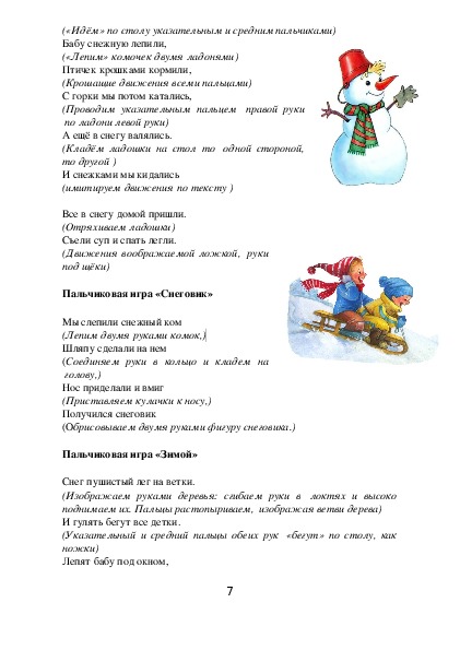 Пальчиковая игра «Зима»