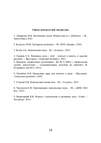 2. Безруких М.М. Тренируем пальчики. – М.: ООО «Дрофа», 2010.
