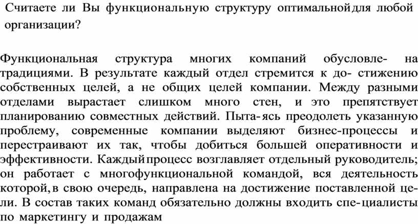 Считаете ли Вы функциональную структуру оптимальной для любой организации?
