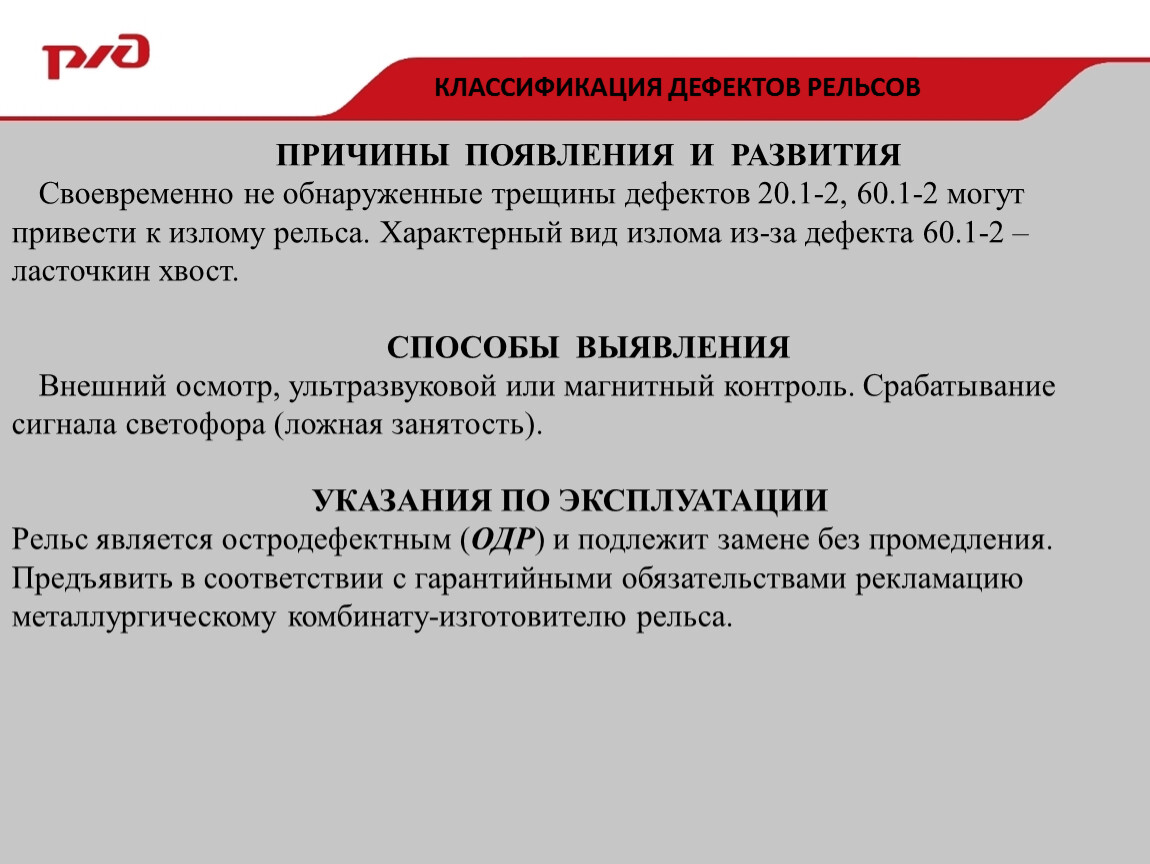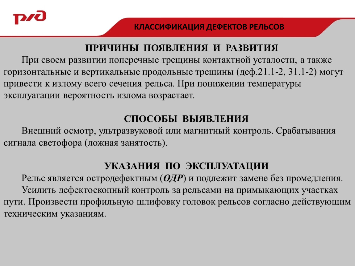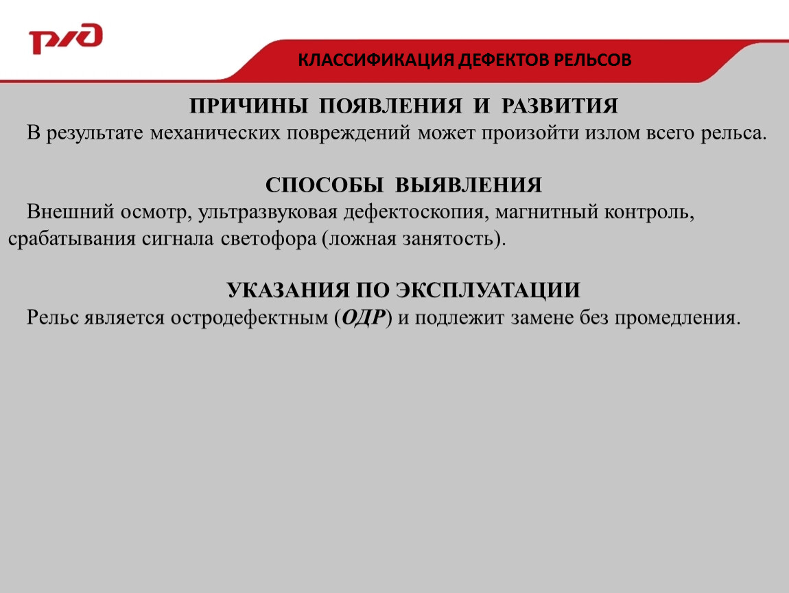 Рельс является остродефектным (ОДР) и подлежит замене без промедления.