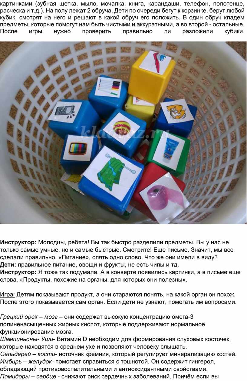 или корзинки, изображения «продукт-орган», кегли, мячи или комочки.