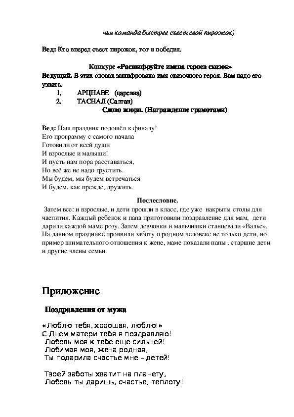 (по страницам сказок), посвящённый Дню Матери.