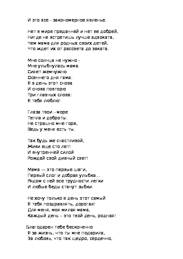 О маме мысли все и лучшие слова,
