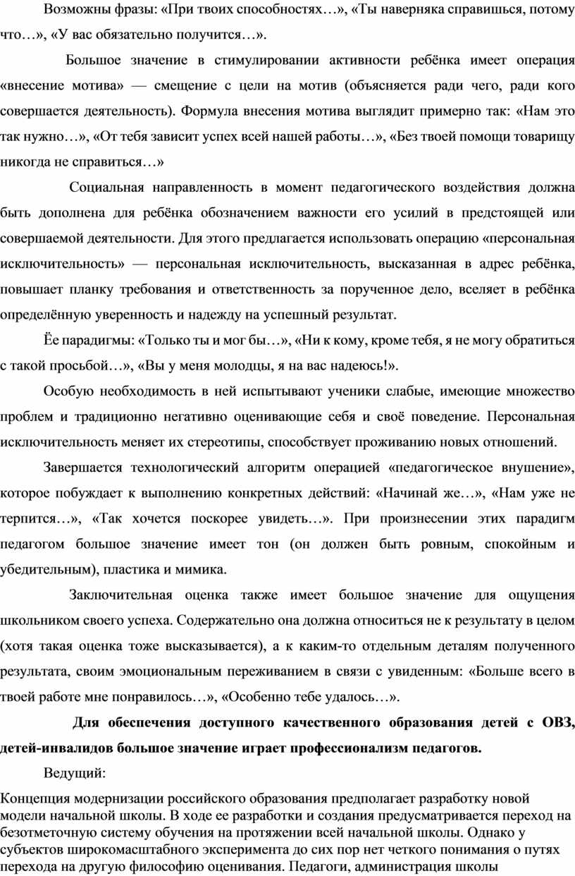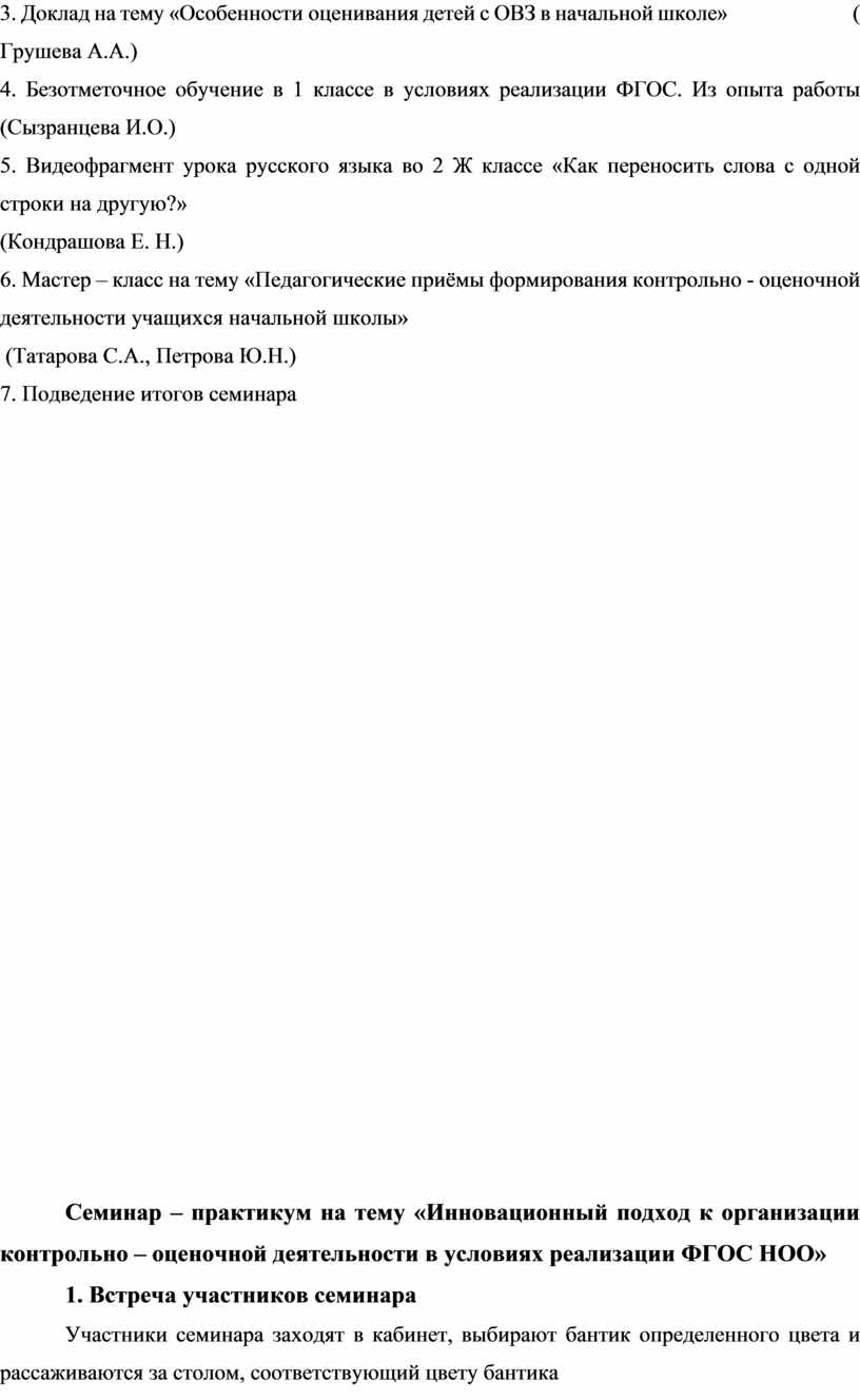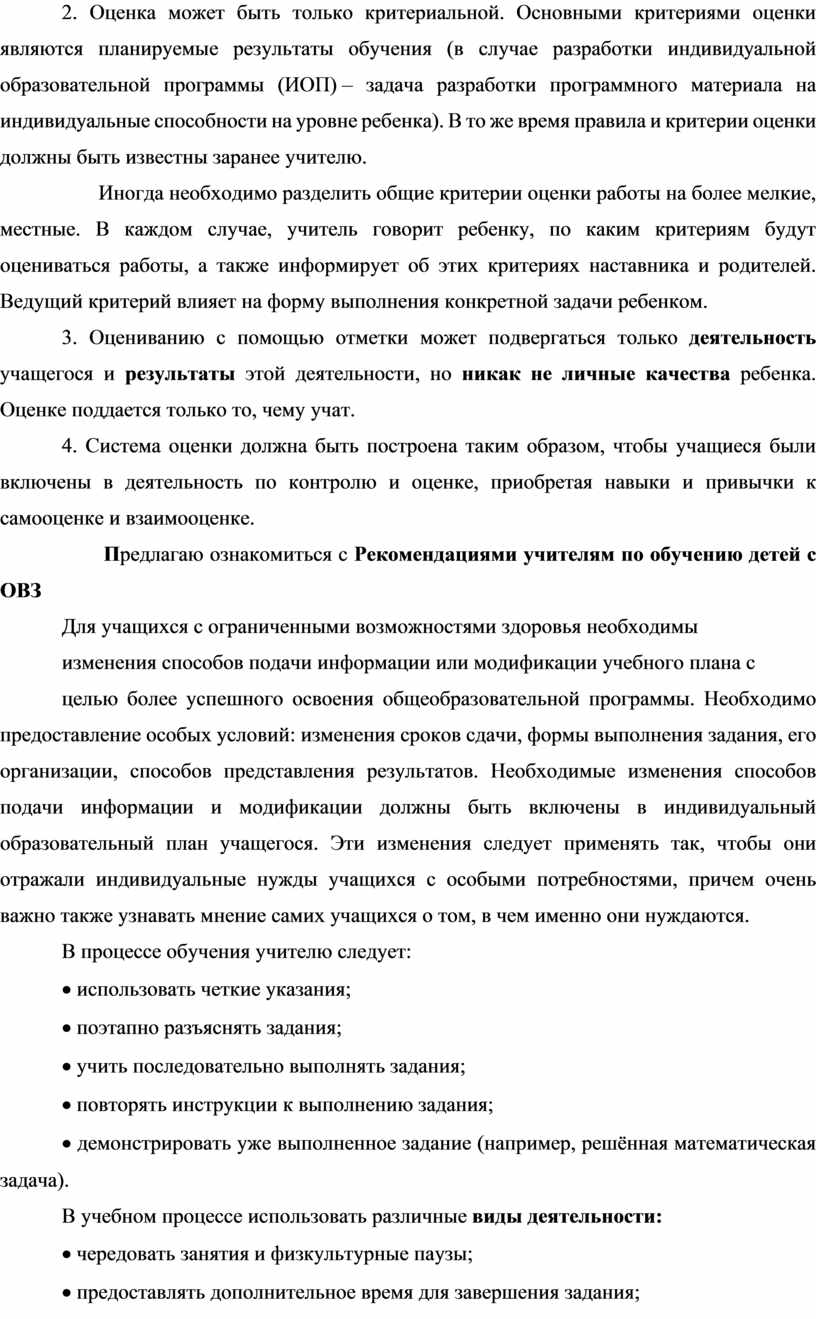 2. Доклад на тему «Особенности оценивания детей с ОВЗ в начальной школе»