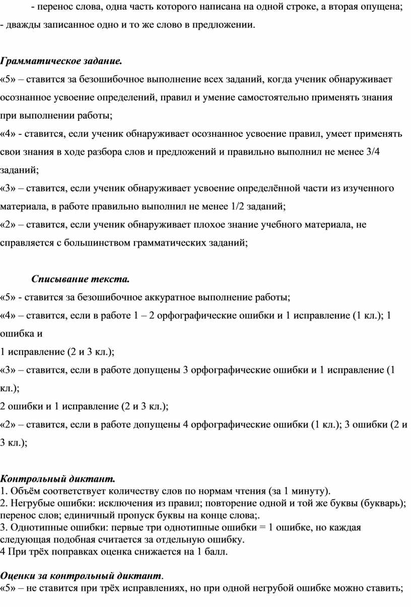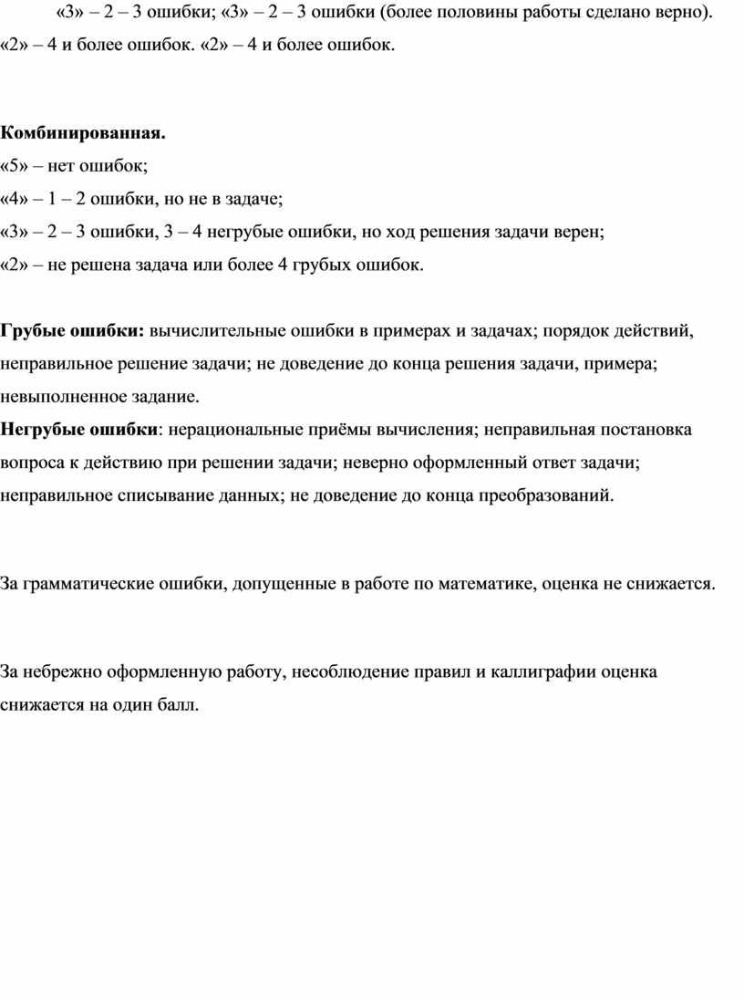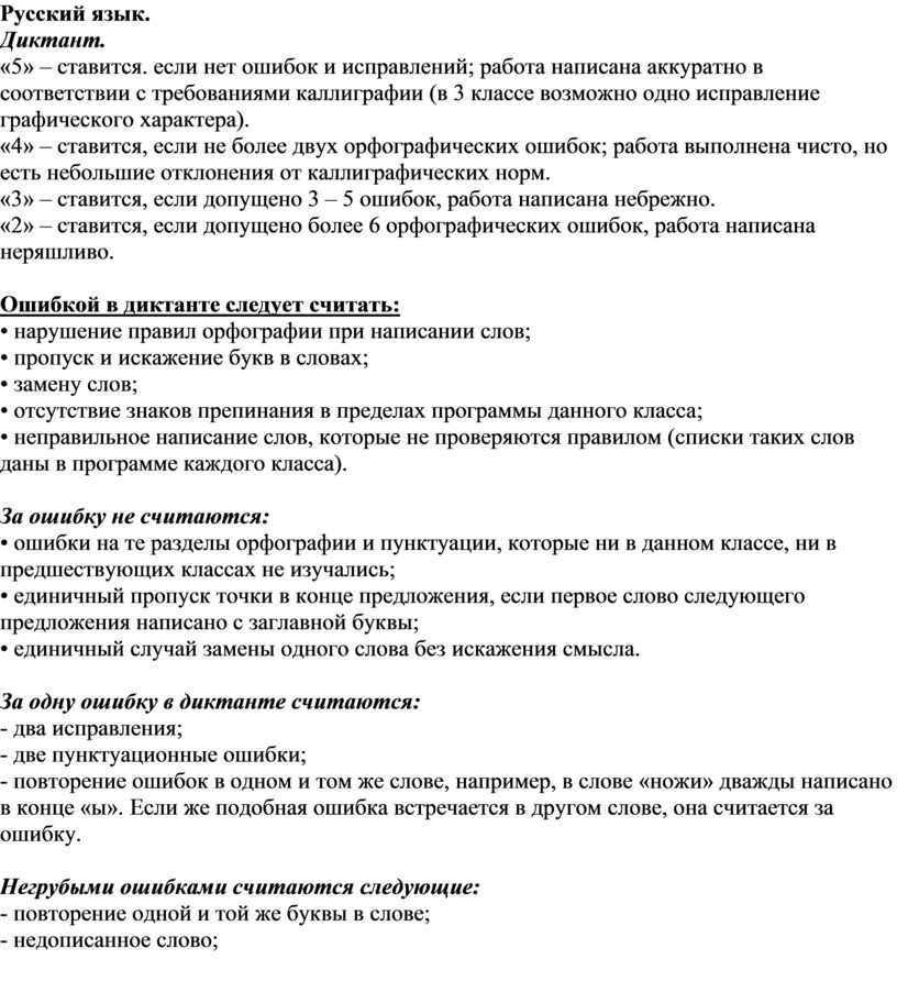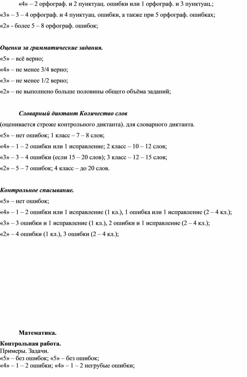 «2» – 4 ошибки (1 кл.), 3 ошибки (2 – 4 кл.);