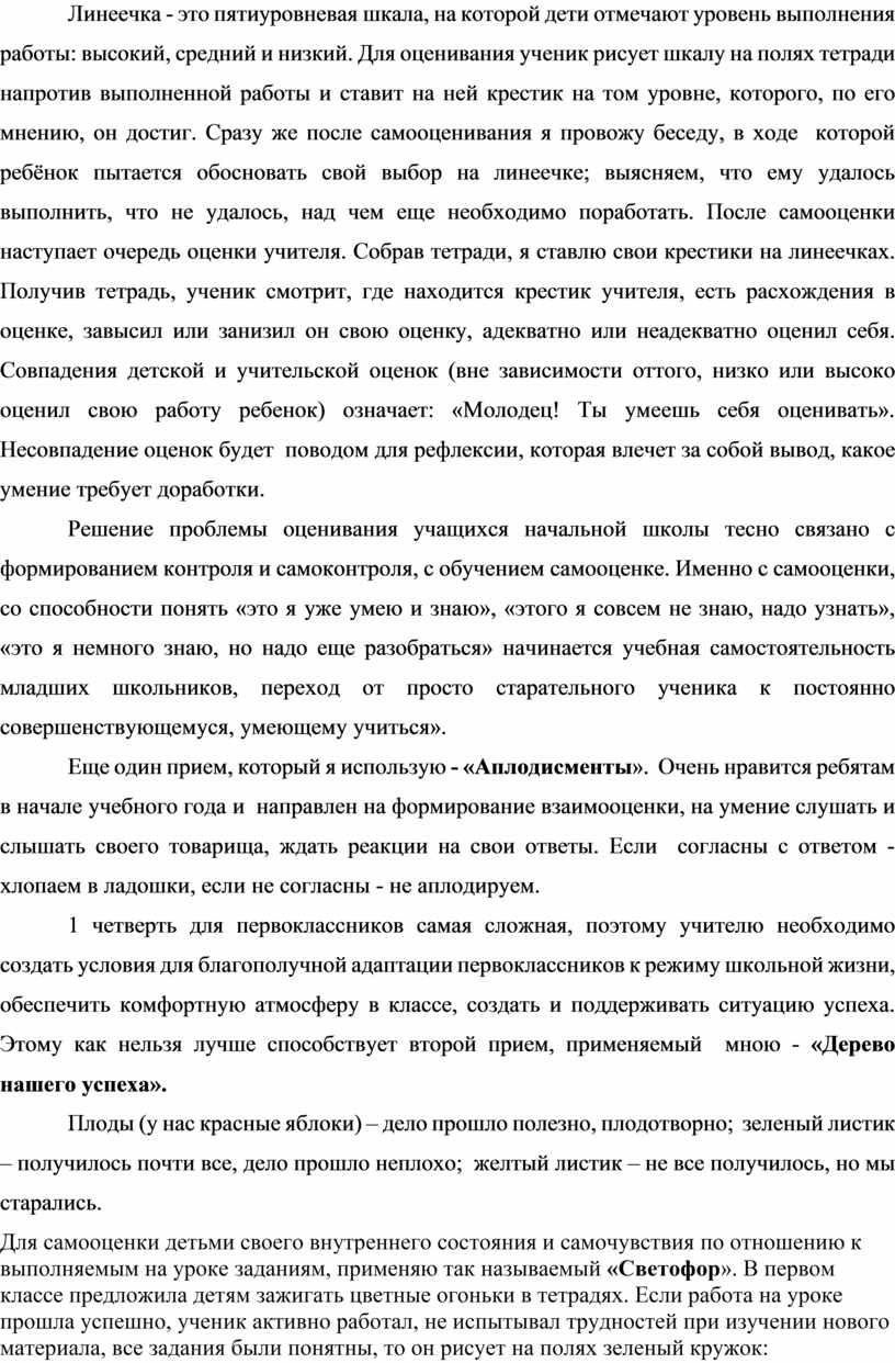 Мы не часто употребляем в своей речи слово «оценка», но ее применение используем каждый день. Когда едим, когда одеваемся и т.д. Вот и во время урока ученики получают оценку от учителей, от своих сверстников. А ведь с помощью оценки ученику можно поднять настроение, но можно и снизить его эмоциональное состояние. Сегодня человек подвержен стрессовым ситуациям очень часто, так диктуют условия жизни. Как быть учителю в современной школе, чтобы не ввести ученика в стрессовую ситуацию посредством оценивания?