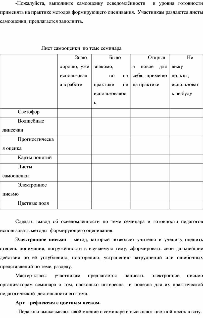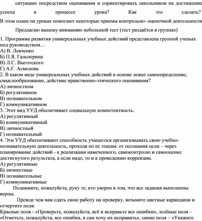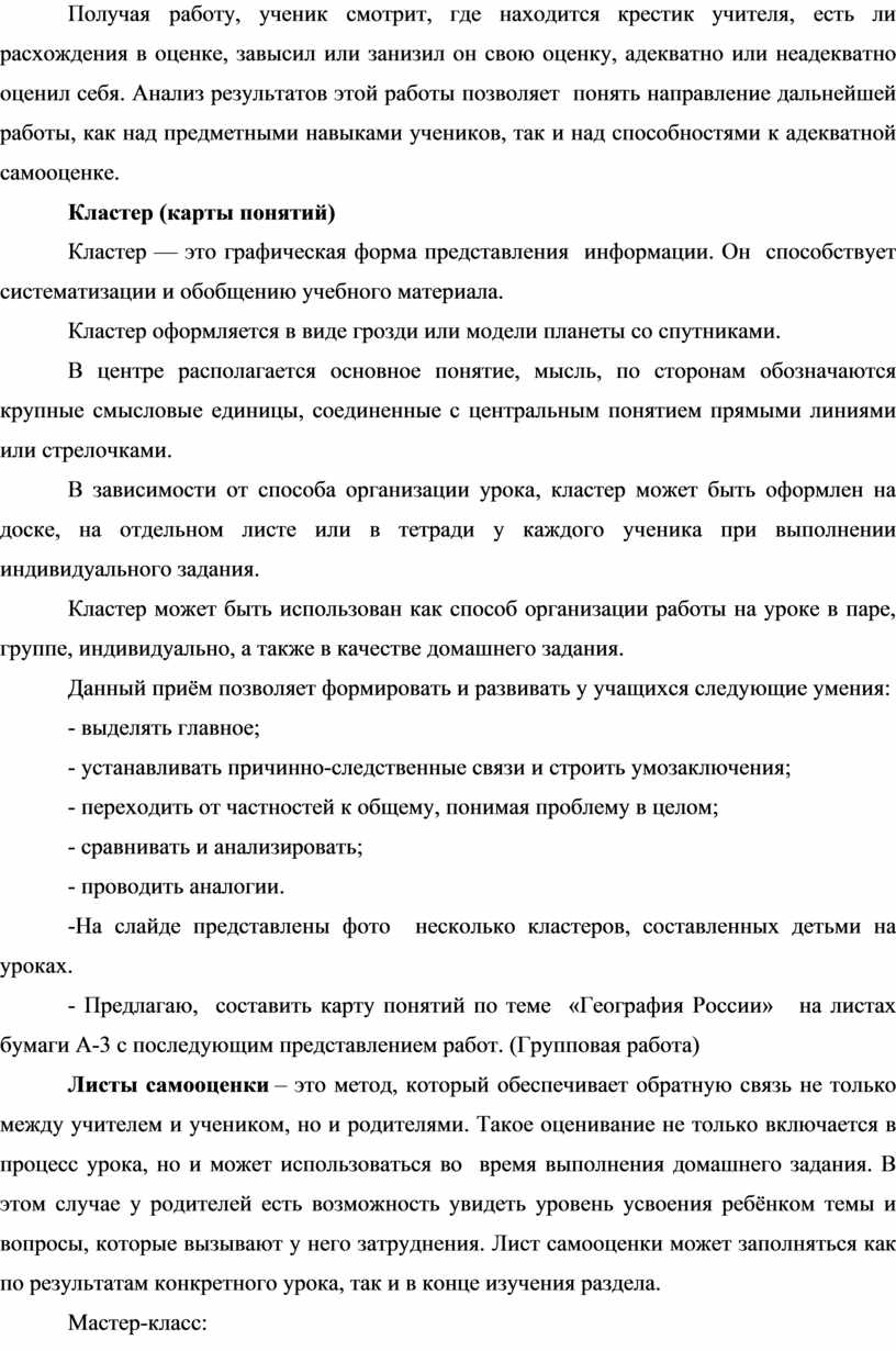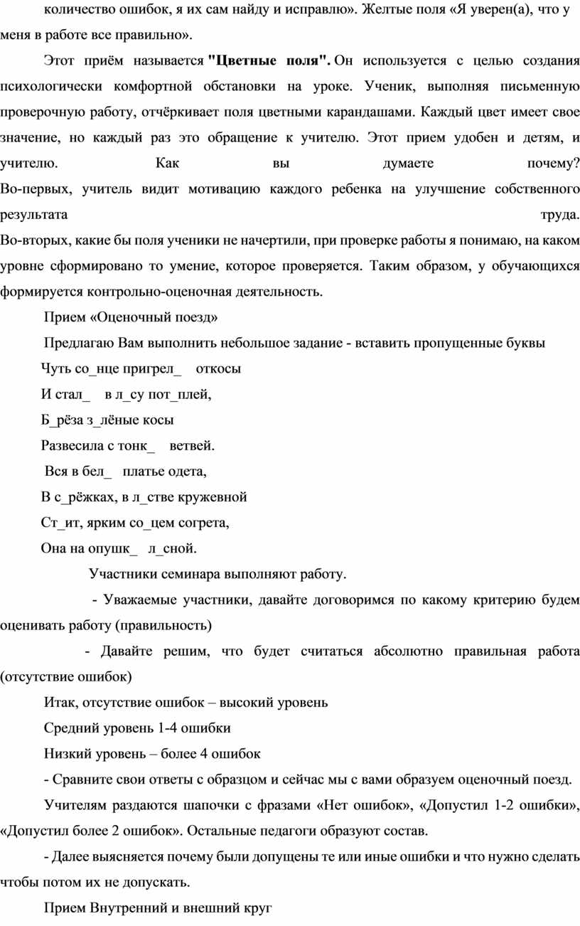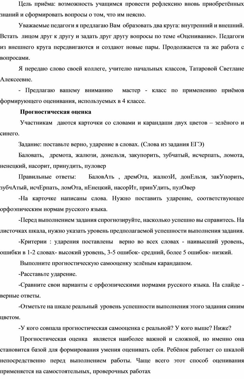 6. Мастер – класс на тему «Педагогические приёмы формирования контрольно - оценочной деятельности учащихся начальной школы»