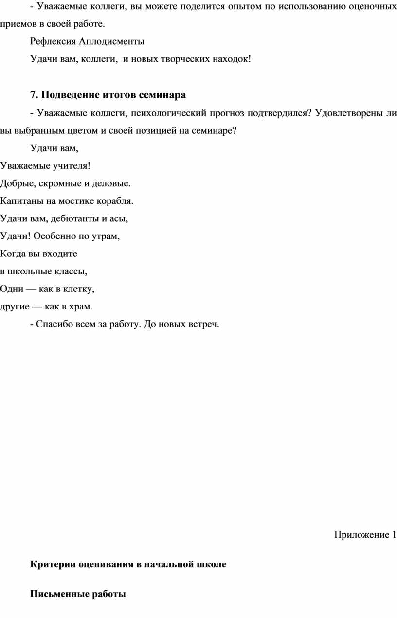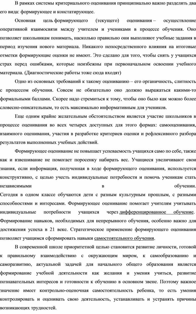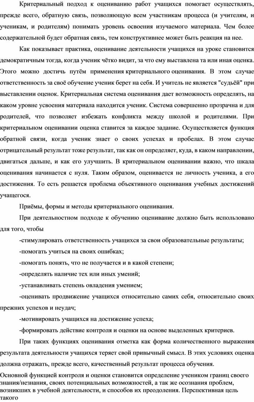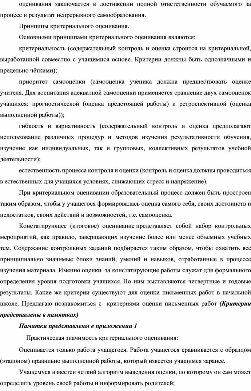 1. Изучение критериального подхода к оцениванию детей в начальной школе;