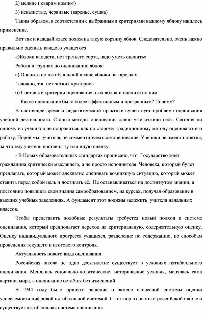 Вот так и каждый класс похож на такую корзину яблок. Следовательно, очень важно правильно оценить каждого учащегося.