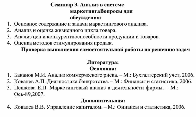 Семинар 3. Анализ в системе маркетинга Вопросы для обсуждения: