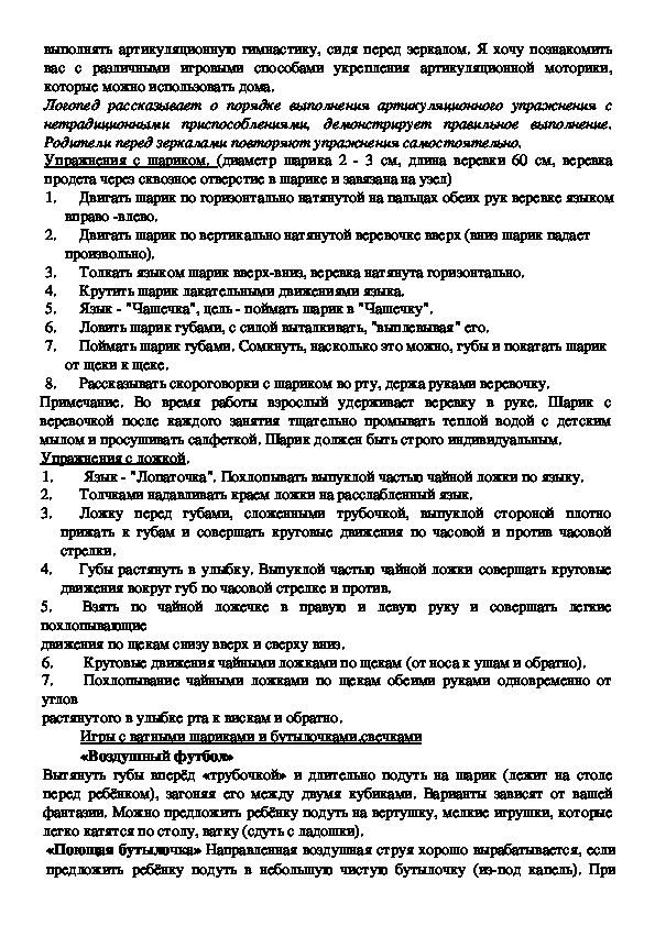 Организация проведения артикуляционной гимнастики дома