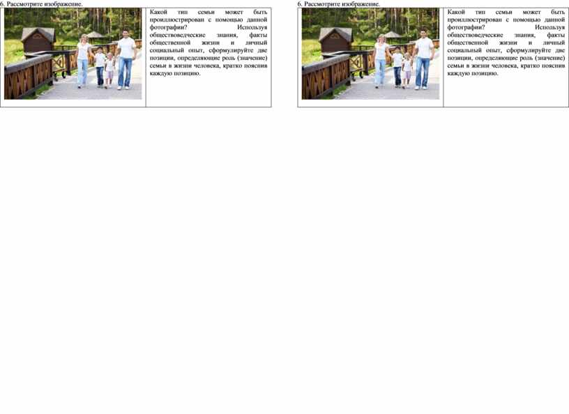 Какой тип семьи может быть проиллюстрирован с помощью данной фотографии? Используя обществоведческие знания, факты общественной жизни и личный социальный опыт, сформулируйте две позиции, определяющие роль (значение) семьи в жизни человека, кратко пояснив каждую позицию. |