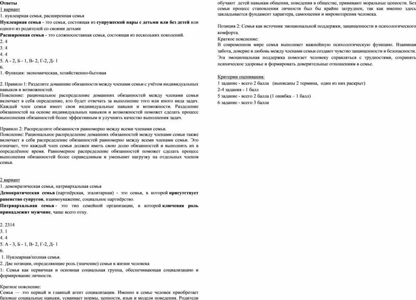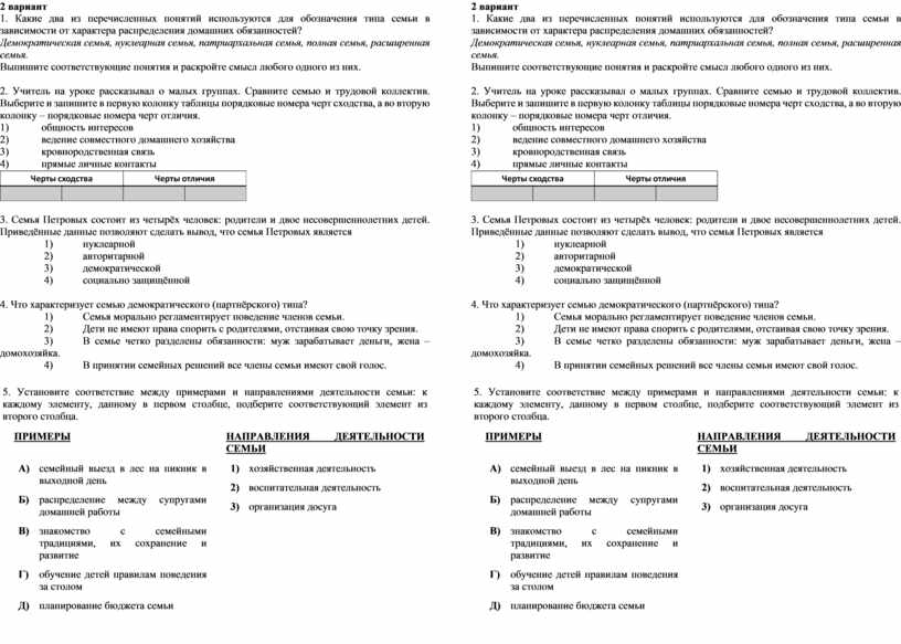 1. Какие два из перечисленных понятий используются для обозначения типа семьи в зависимости от характера распределения домашних обязанностей?