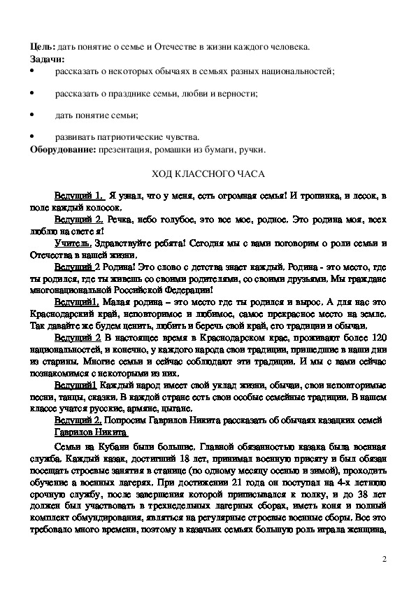 Ведущий 2. Попросим Гаврилов Никита рассказать об обычаях казацких семей