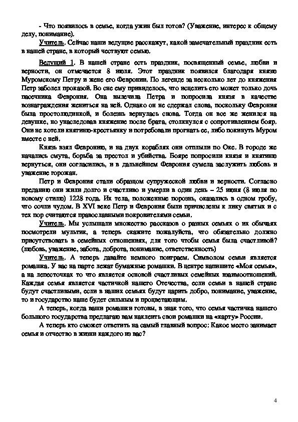 рассказать о празднике семьи, любви и верности;
