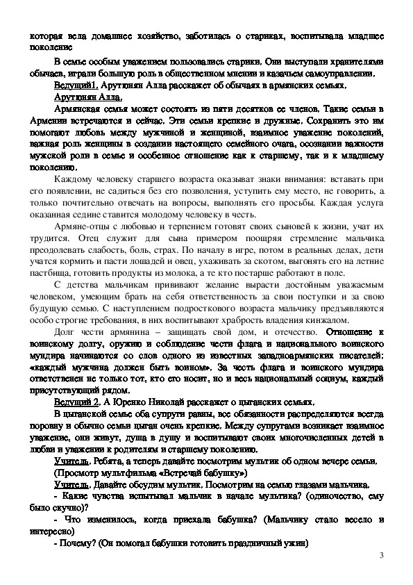 Учитель. Мы услышали множество рассказов о разных семьях о их обычаях