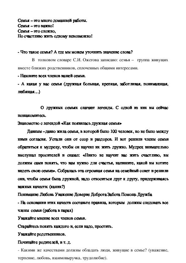 Цель: уточнение представлений о семье, определение отношений традиционных