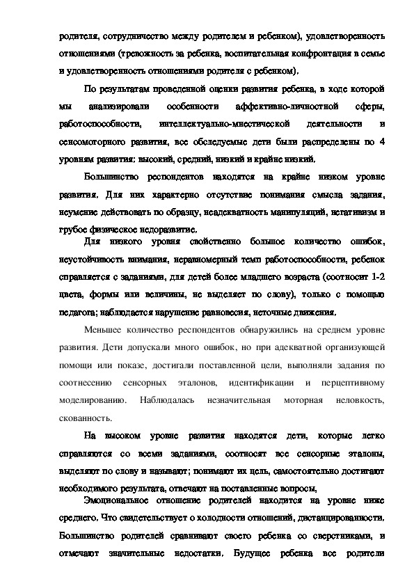 обратной ситуации, при низком и крайне низком уровне развития ребенка,