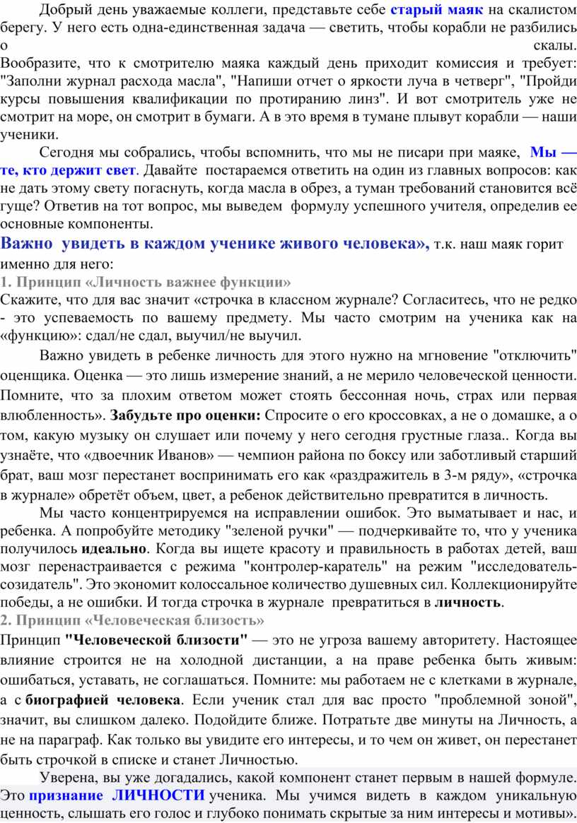Важно увидеть в каждом ученике живого человека», т.к. наш маяк горит именно для него: