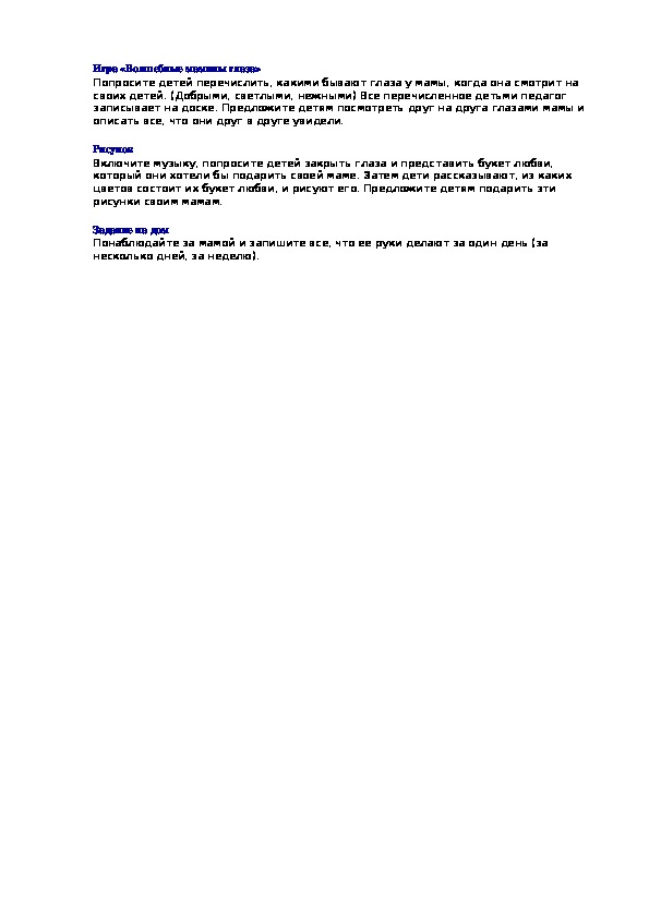 сокровище и сочиняет сказку о маме, которая подарила своим детям это сокровище.Игра «Волшебные мамины глаза»