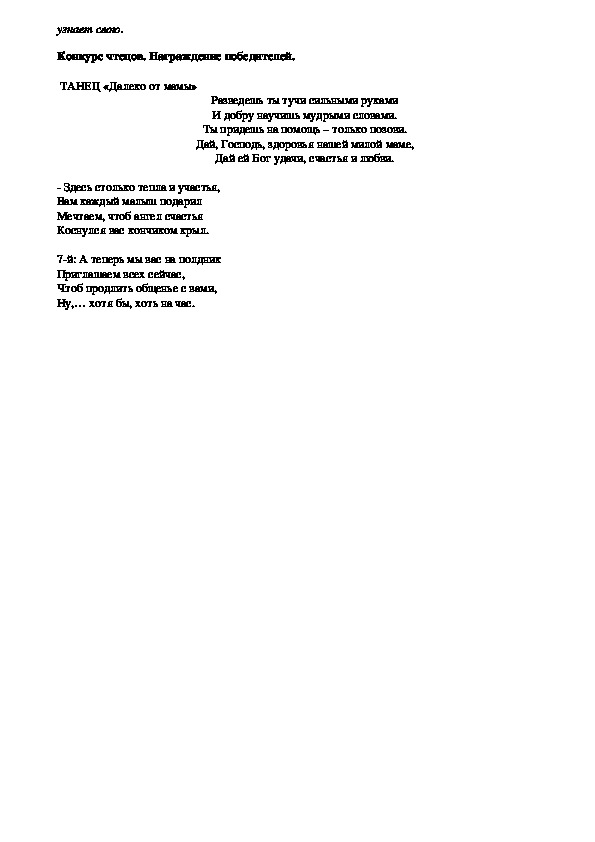 Ведущий: Мама следит за нашей дорогой. Материнская любовь согревает нас до старости.