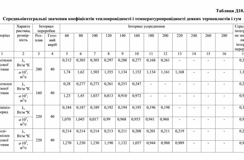 Середньоінтегральні значення коефіцієнтів теплопровідності і температуропровідності деяких термопластів і гум