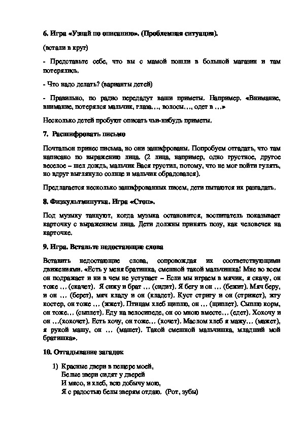 самостоятельной игровой деятельности детей: игрытесты, игрызагадки,