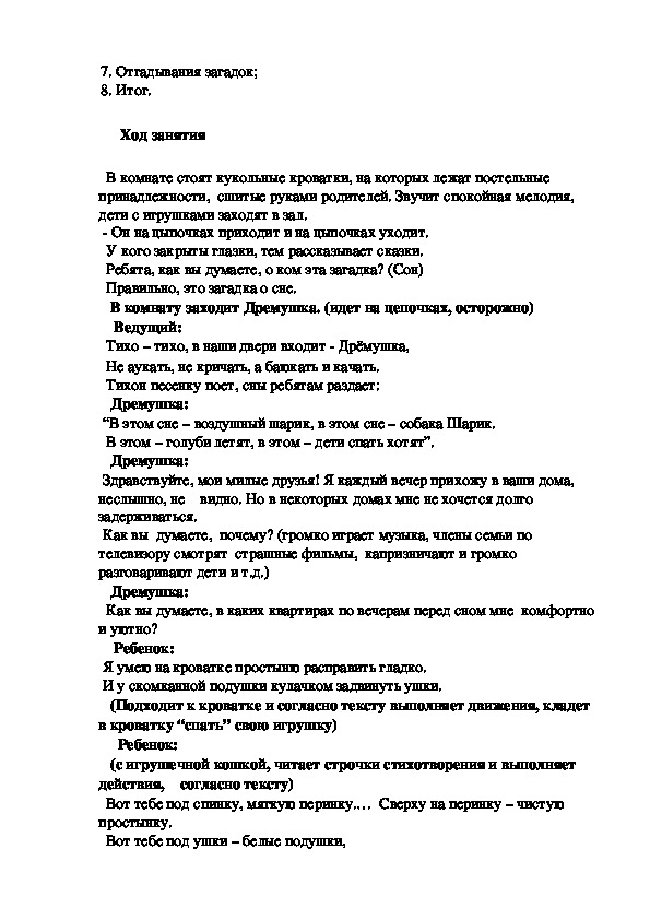 учреждения, начиная с утреннего приема детей (беседы) и проведения